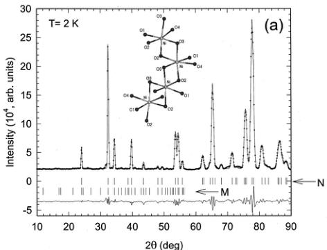 - Magnetic moments: Refined ordered moment at \( Ni^{2+} \)-site: \( \mu=0.9(1)\mu_{B} \) at 2 K. Spins lie parallel or antiparallel to the c-axis (magnetic easy axis).