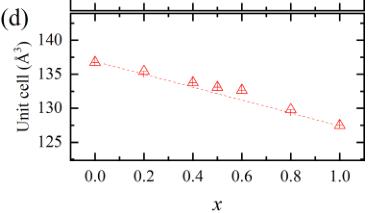 hexagonal layer of Au – Ge breaks the centrosymmetric symmetry \( (P6_{3}mc \) , no. 186), the flat Cu – Ge layer conserves the centrosymmetric symmetry \( (P6_{3}/mmc \) , no. 194) of the hexagonal structure [12,27]. Fig. 2(b) and (c) show lattice parameters of \( CeAu_{1-x}Cu_{x}Ge \) determined from so-called Le Bail fits of the x-ray diffraction patterns using the \( P6_{3}mc \) and \( P6_{3}/mmc \) space groups for \( 0 \leq x \leq 0.5 \) and \( 0.5 < x < 1.0 \) compounds, respectively. In the Le Bail fit, only the crystal metrics and resolution parameters are refined, whereas the integrated Bragg peak intensities are refined independently without any structure model. The crystal structures were determined from the neutron diffraction data (see below). Cu-doping (x) linearly shortens the a-lattice parameter as x increases, decreasing about 3 % at x = 1. On the other hand, the c-lattice parameter exhibits two different linear regimes with an abrupt change near x = 0.5, which can be interpreted by the different crystal symmetry. The unit cell volume linearly decreases as x increases because the a-lattice parameter change is dominant.