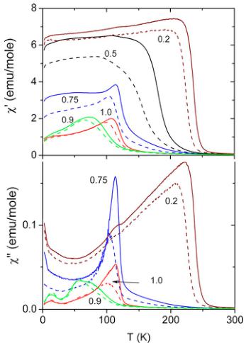 The ac magnetic susceptibility \( \chi(T)=\chi'(T)+i\chi''(T) \) was measured in zero external field with amplitude of the ac field 10 Oe and frequency 1 kHz using Quantum Design PPMS station. Neutron powder diffraction experiments were carried out at the SINQ spallation source of Paul Scherrer Institute (Switzerland) using the high-resolution diffractometer for thermal neutrons HRPT (Ref. 30) ( \( \lambda=1.866, 1.494 \AA \) , high intensity mode \( \Delta d/d \geqslant 1.8 \times 10^{-3} \) ), and the DMC diffractometer \( ^{31} \) situated at a supermirror coated guide for cold neutrons at SINQ ( \( \lambda=2.56 \AA \) ). All the temperature scans were carried out on heating. X-ray synchrotron diffraction at room temperature was done at the Material Sciences beam line (MS, SLS/PSI). The refinements of the crystal and magnetic structure parameters were carried out with FULLPROF \( ^{32} \) program, with the use of its internal tables for scattering lengths and magnetic form factors.