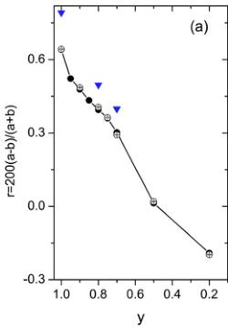 The crystal structure for all the compositions \( y=0.2-1.0 \) at all temperatures is well refined in single phase in the