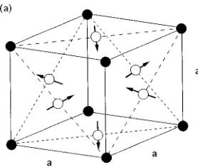 The magnetic structure in a disordered \( Mn_{0.75}Ir_{0.25} \) alloy has been studied using neutron-diffraction experiments. \( ^{3} \) One possibility is the collinear spin state where alternating planes of up and down spins appear along the [001] axis (type-1 antiferromagnet). The alternative is that each spin on the four sublattices is directed along the \( \langle111\rangle \) axis. In practice, it is very difficult for fcc Mn-based alloys to distinguish between the two models.