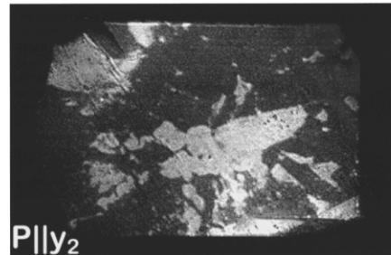 Figure 2 shows two sets of images which were gained from two samples in the spin-flop phase with light polarized parallel to the three twofold axes \( y_{1,2,3} \) of the crystal. Since the images taken with \( y_{1} \) -, \( y_{2} \) -, and \( y_{3} \) -polarized light differ, the SH signal must depend on the magnetic ordering of spins which breaks the threefold symmetry of the crystal in the