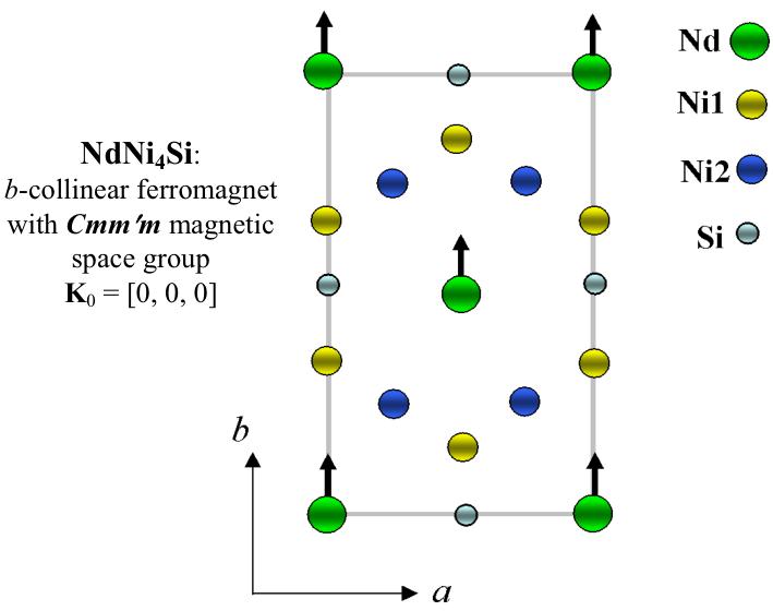 NdNi_{4}Si exhibits b-axis ferromagnetic order with the Cmm m magnetic space group.