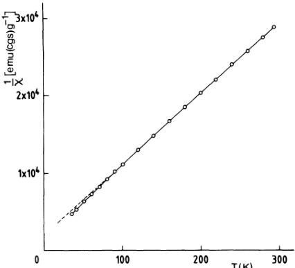 FIG. 3. Inverse magnetic susceptibility of \( NiCO_{3} \) as a function of temperature.