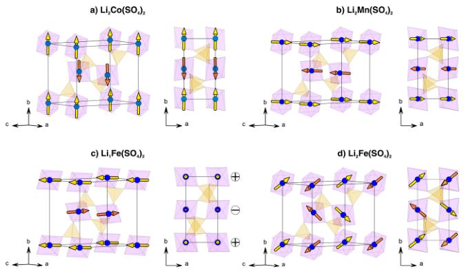 | Li4CoII(SO4)2 | Li2MnII(SO4)2 | Li3FeII(SO4)2 | Li1FeII(SO4)2 | |
