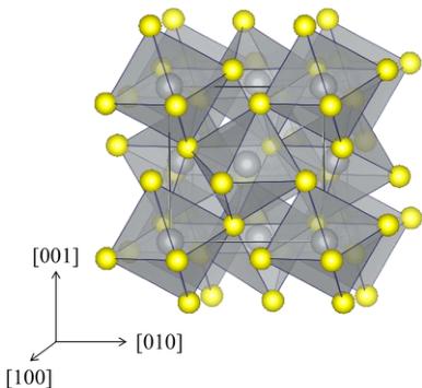 FIG. 1. The crystal structure of \( NiS_{2-x}Se_{x} \) . Ni sites at the center of the octahedra are coordinated by S. The octahedra form a face-centered lattice.