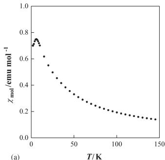 Fig. 1. (a) Temperature dependence of the magnetic susceptibilities for \( Er_{2}Ru_{2}O_{7} \) . (b) Temperature dependence of the specific heat for \( Er_{2}Ru_{2}O_{7} \) .