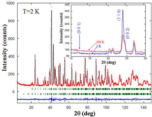 Neutron patterns were also acquired at 2 K in D2B to refine the magnetic structure. The comparison of the patterns