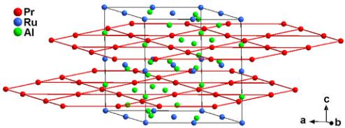 Next, we discuss the possible origin of the observed magnetic structures. The magnetism of rare-earth-based intermetallic compounds can be described in terms of exchange interactions and magnetocrystalline anisotropy. The topology of the crystal structure of \( Pr_{3}Ru_{4}Al_{12} \) might lead to unequal exchange and crystal-electric-field (CEF) interactions for different \( Pr^{3+} \) ions.