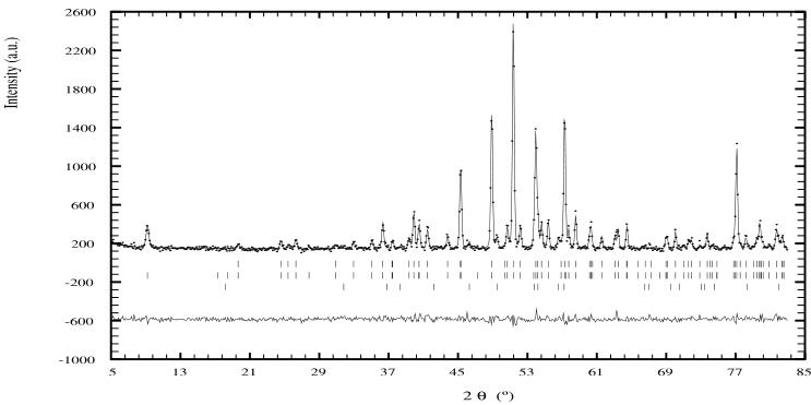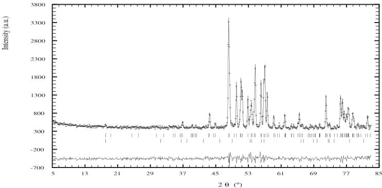The \( Nd_{5}Si_{4} \) sample was two-phase, with \( \sim5 \) wt% of hexagonal \( Nd_{5}Si_{3} \) (space group \( P6_{3}/mcm \) ) as an impurity which was included in all pattern refinements reported here.