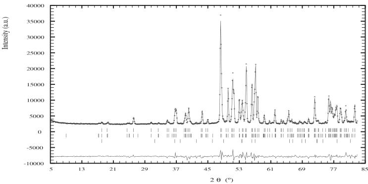 Neutron powder diffraction experiments were carried out on \( \sim \) 4 g samples on the DUALSPEC C2 high-resolution powder diffractometer located at the NRU reactor, Chalk River Laboratories, Ontario, operated by Atomic Energy Canada Ltd. The neutron wavelength was 2.3685(1) Å. A review of the neutron scattering facilities at Chalk River, including a description of C2, can be found in [13]. Patterns were obtained for each compound over the temperature range 11–295 K and all diffraction patterns were analysed by the Rietveld method using the FullProf [14] program.