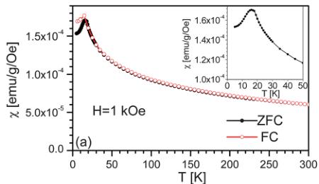 DC magnetometry measurements were performed in helium gas in a commercial SQUID (Superconducting Quantum Interference Device) magnetometer (Quantum Design) at temperatures from 4.0 to 300 K, in applied magnetic fields up to 70 kOe. For low-field measurements the remnant field in the superconducting magnet was nulled using a compensating coil in unison with a fluxgate.