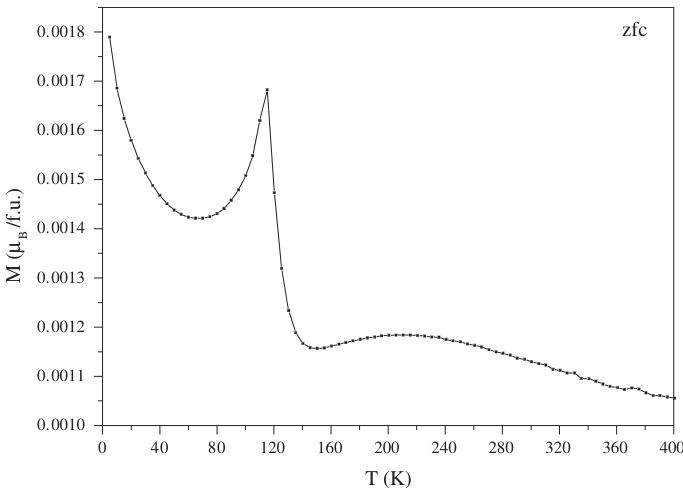 Magnetization measurements were carried out using a Superconducting Quantum Interference Device (SQUID) in the temperature range 5–400 K during warming after a magnetic field of 1.45 T was applied at low temperature (zero field cooling process).