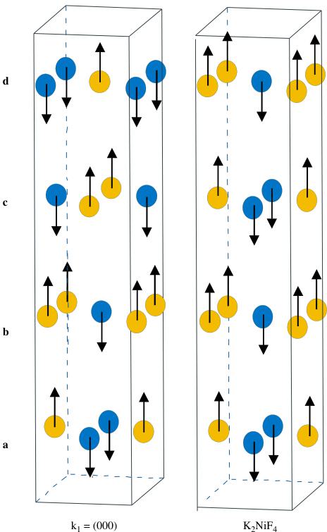 Finally it is worth pointing out that a mixture of magnetic structures \( k(000) \) and \( K_{2}NiF_{4} \) were also previously observed for \( Rb_{2}MnF_{4} \) by Birgeneau et al. [37].