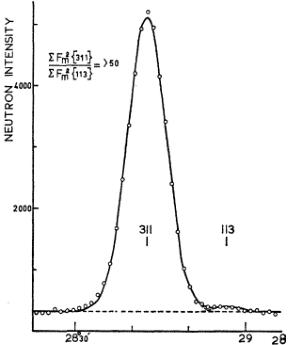 FIG. 1. Neutron diffraction peaks \( \{311\} \) and \( \{113\} \) .