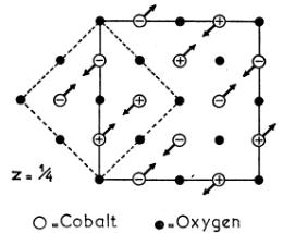 It should be noted that in the tetragonal state the oxygen atoms are no longer required by symmetry to be exactly halfway between the Co atoms. In the nuclear intensities, however, no evidence was found for a deviation.
