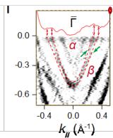- Bulk band splittings observed in both magnetic and paramagnetic states.