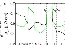 - Hall resistivity shows abrupt jumps at \( H_{1} \) and \( H_{2} \).
